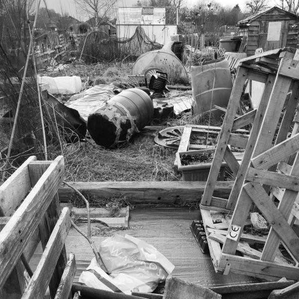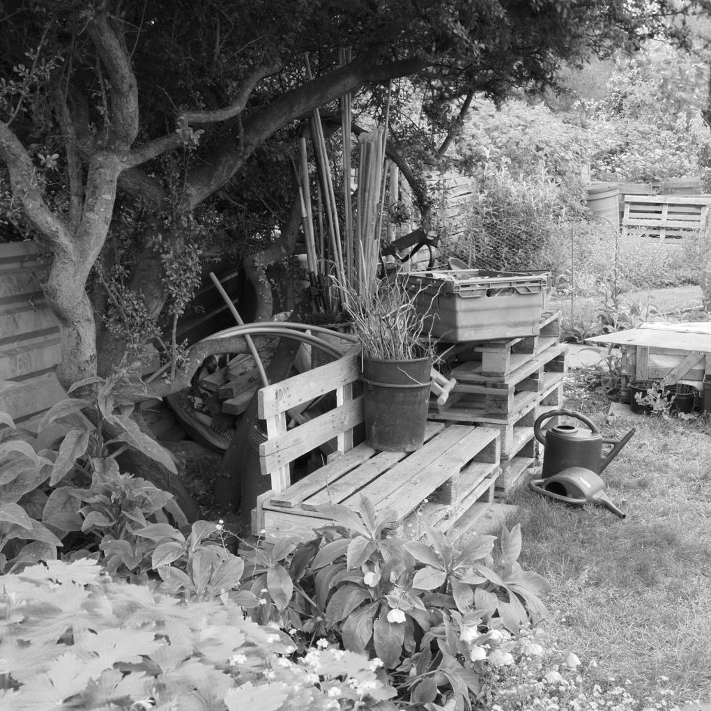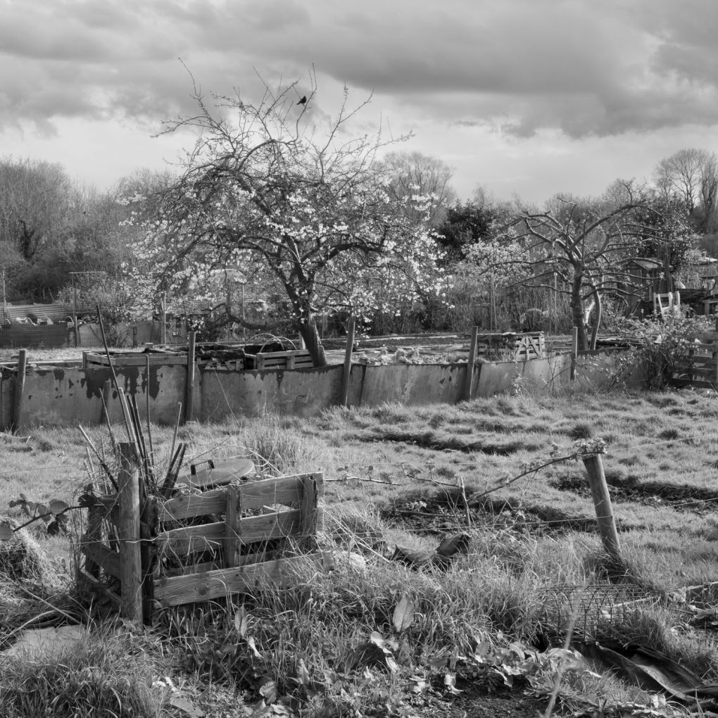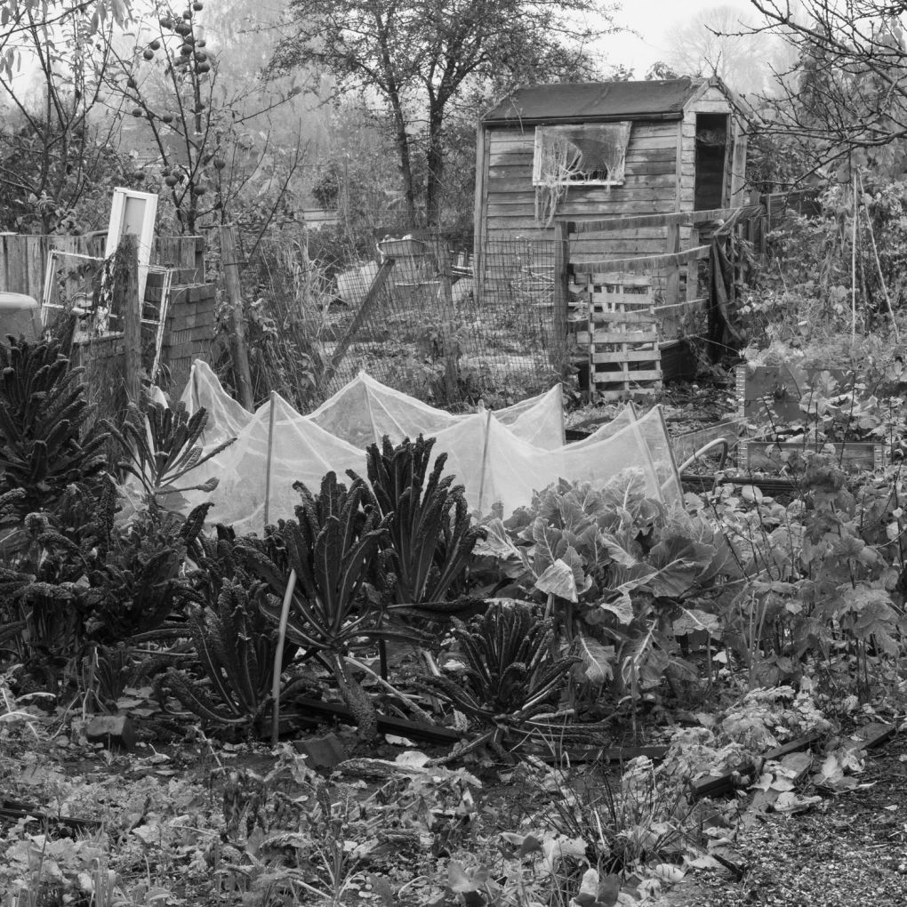 These images are of allotments very close to my home. Over frequent visits I began to speculate about the story of each plot and the personalities of the tenants. In this very small area of suburbia there was to be found allegory and metaphor, chaos and order, humour and optimism, commitment and abandonment.
